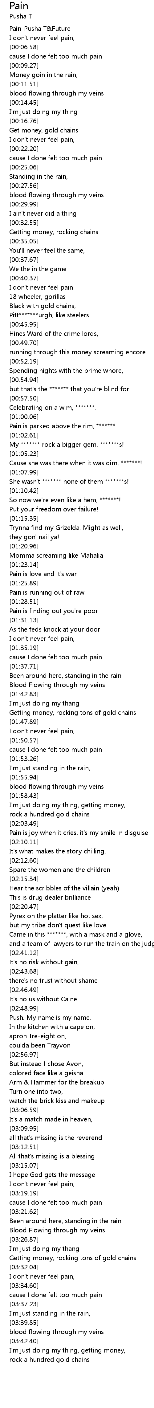 | [01:00.74] | Pain is parked above the rim, ******* |