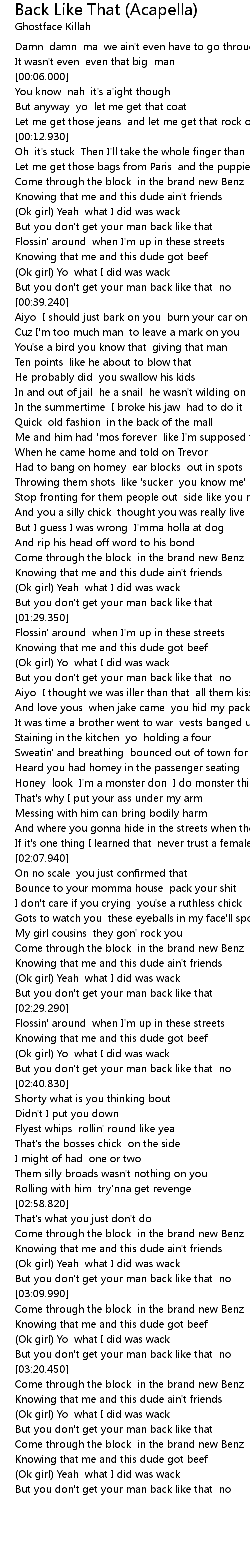 (Ok girl) Yo what I did was wack |