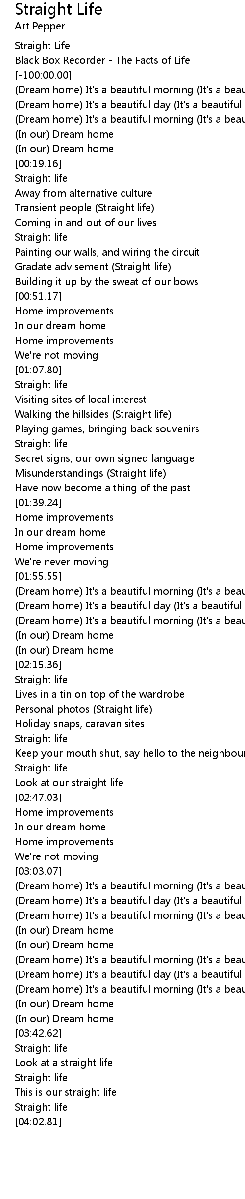 [04:00.08] Straight life