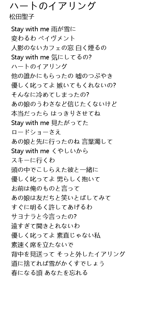 | [00:43.200] | Stay with me 気にしてるの? |