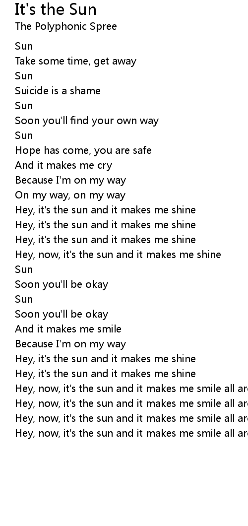 Hey, now, it's the sun and it makes me smile all around, all around |