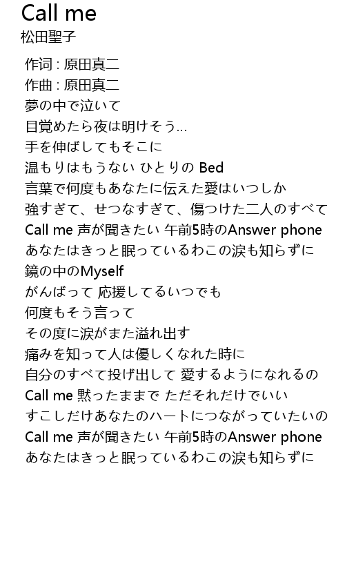 | [03:12.922] | Call me 声が聞きたい 午前5時のAnswer phone |