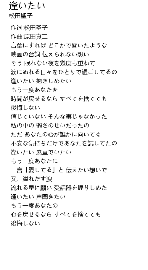 | [01:14.039] | 逢いたい 抱きしめたい |