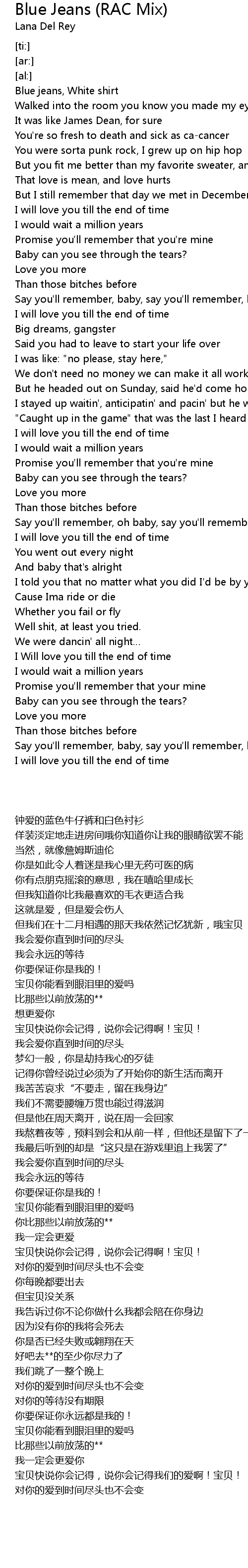 | Song | Blue Jeans (RAC Mix) |