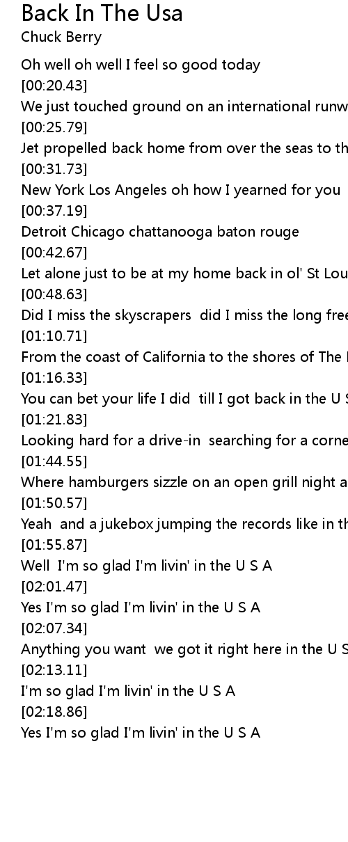 [02:20.89] Yes I'm so glad I'm livin' in the U S A