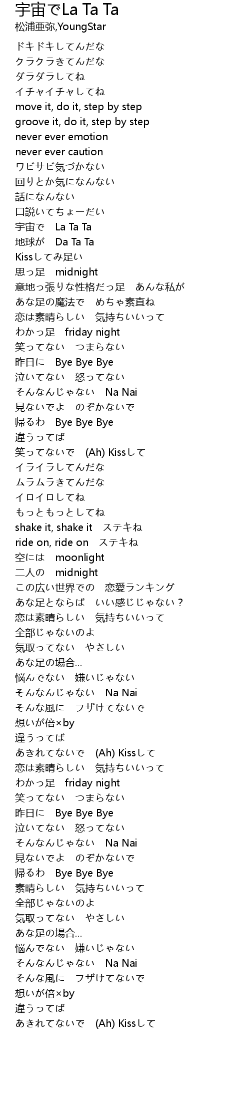 | [01:03.74] | 宇宙で La Ta Ta |