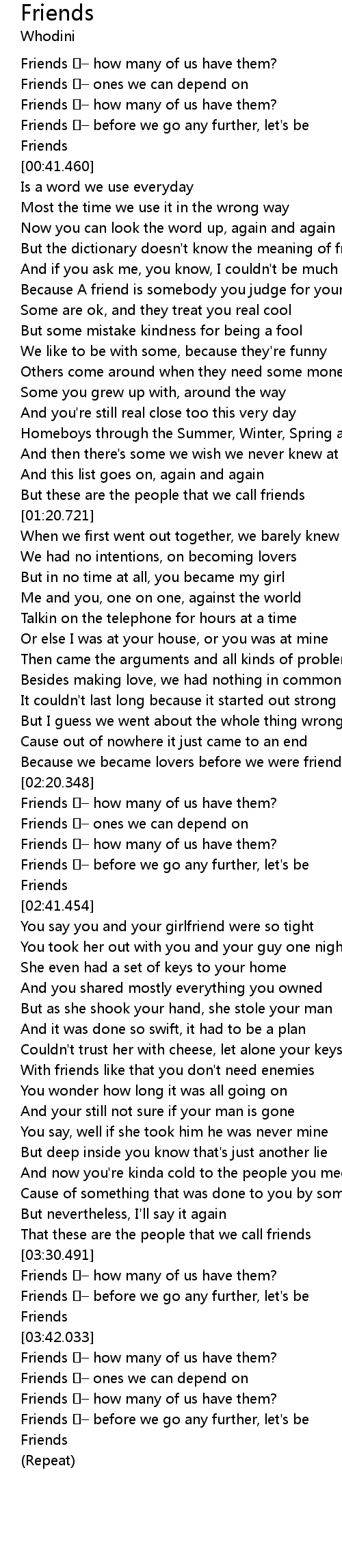 | [00:52.731] | Because A friend is somebody you judge for yourself |