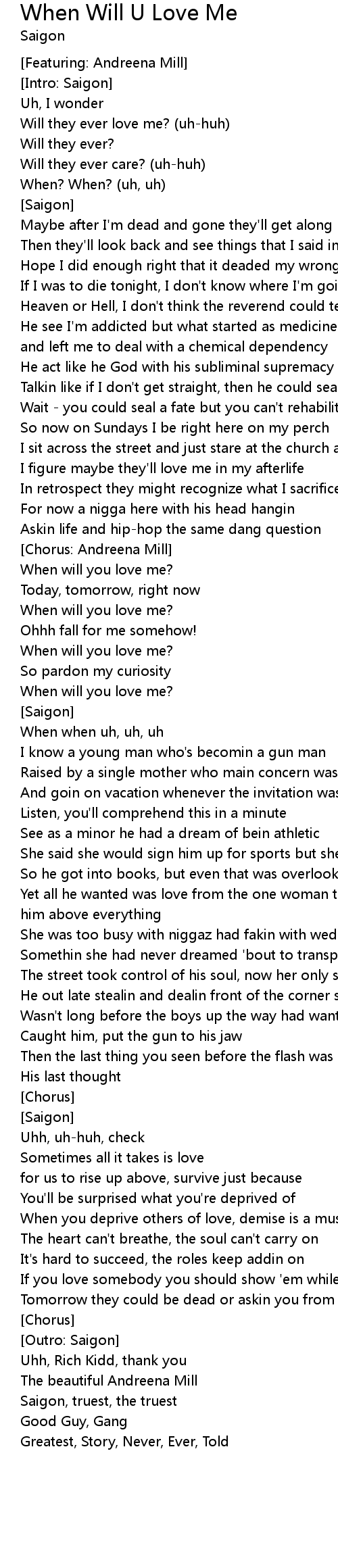 When will you love me? |