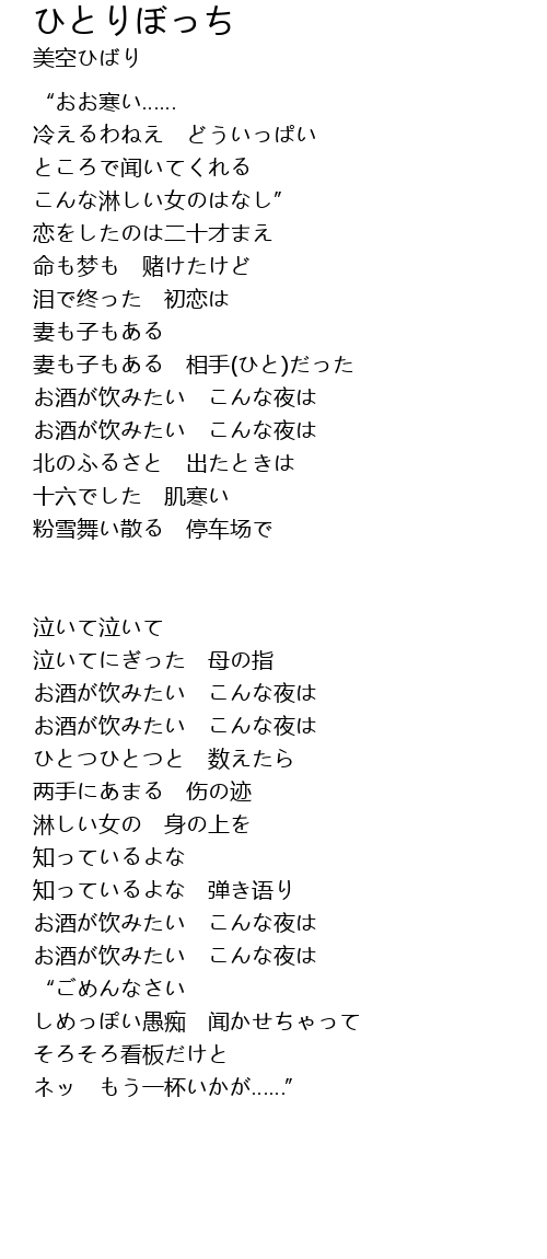 | Song | ひとりぼっち |