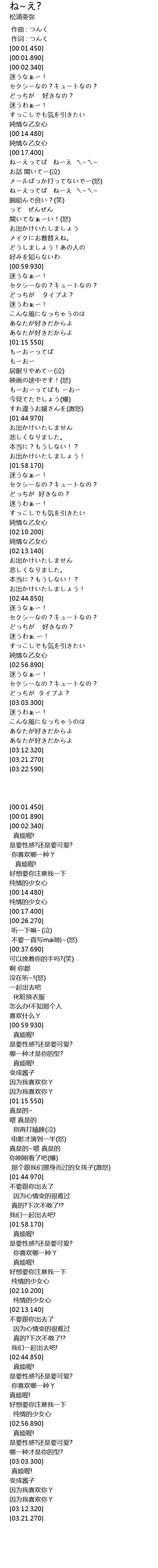 ね〜えってば ね〜え ㄟ~ㄟ~ |