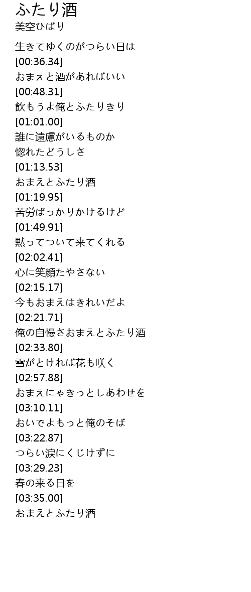 | [03:35.88] | おまえとふたり酒 |