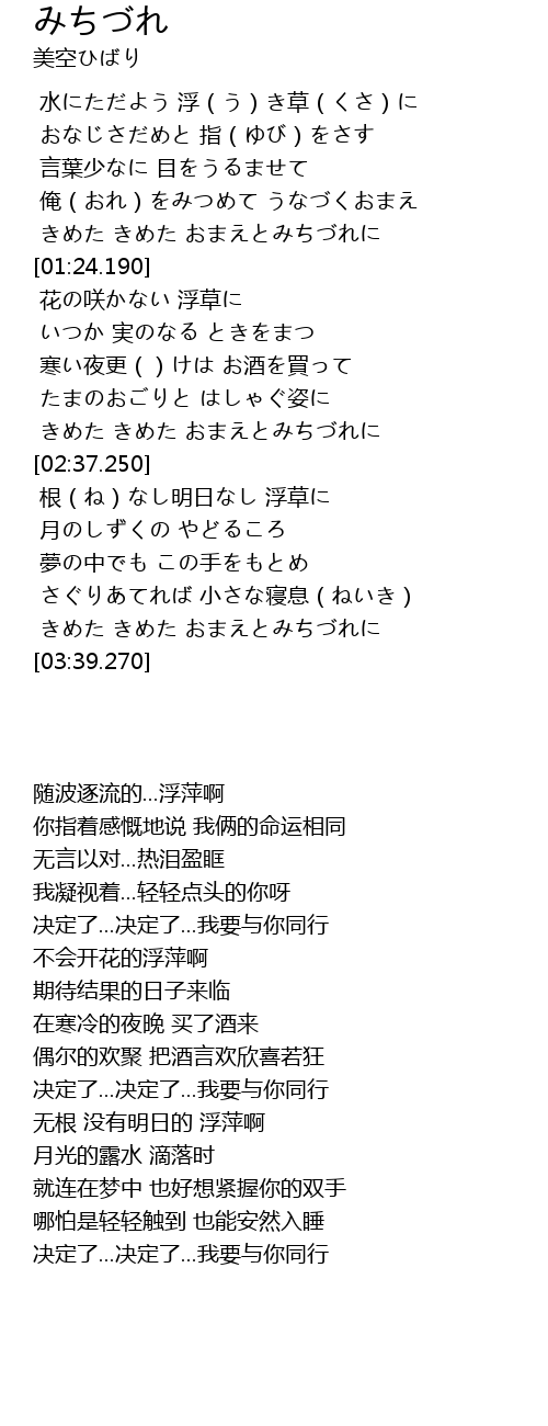 | [00:32.270] | 水にただよう 浮(う)き草(くさ)に |