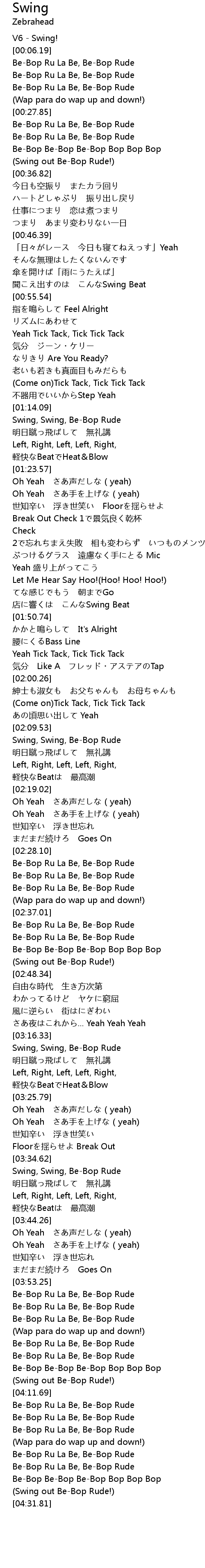 | [03:34.84] | Swing, Swing, BeBop Rude |