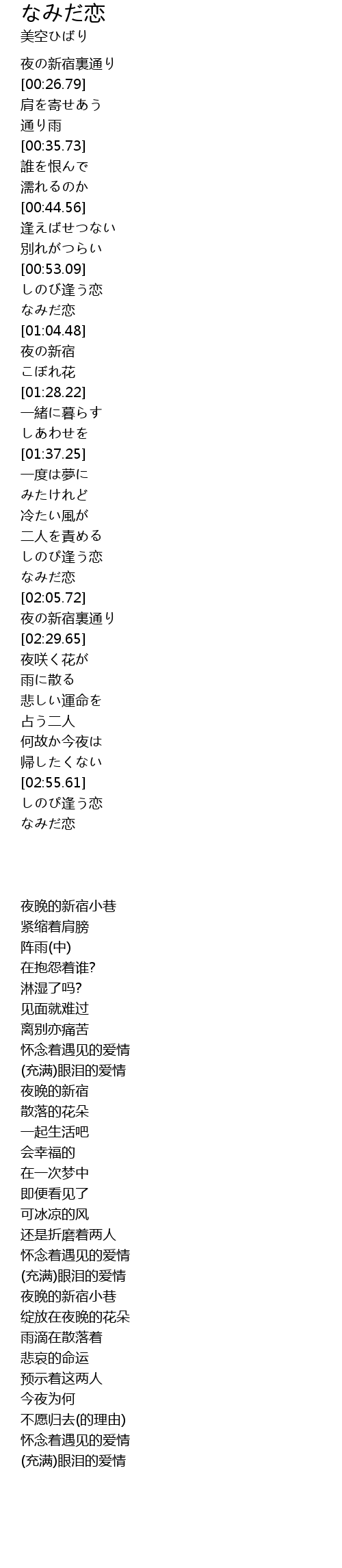 | [01:59.49] | なみだ恋 |