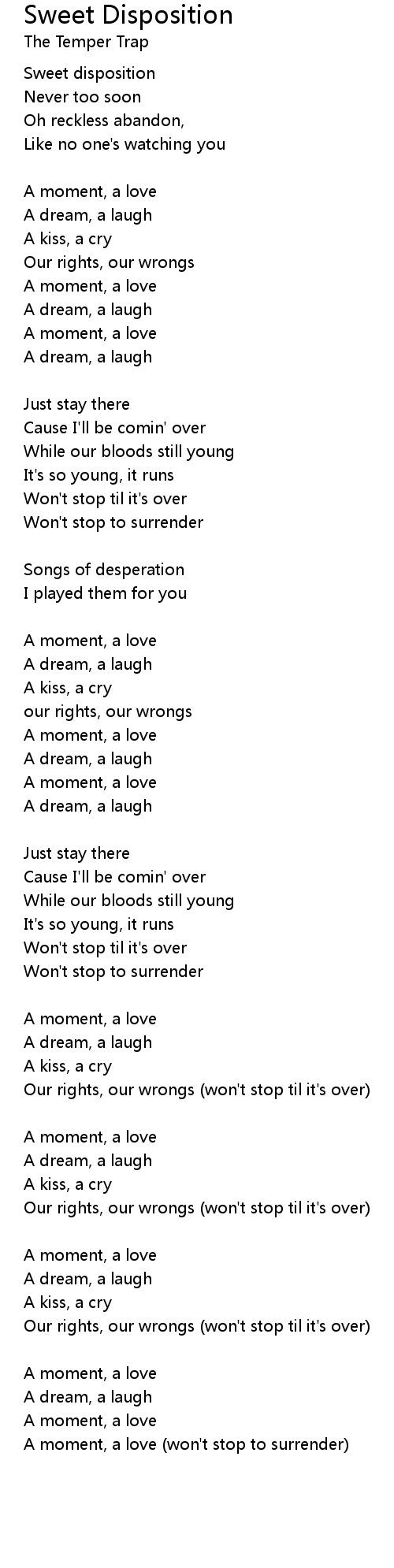 A moment, a love (won't stop to surrender) |