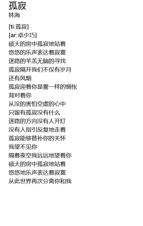 | [01:35.545] | 孤寂能够替补你的关怀 |