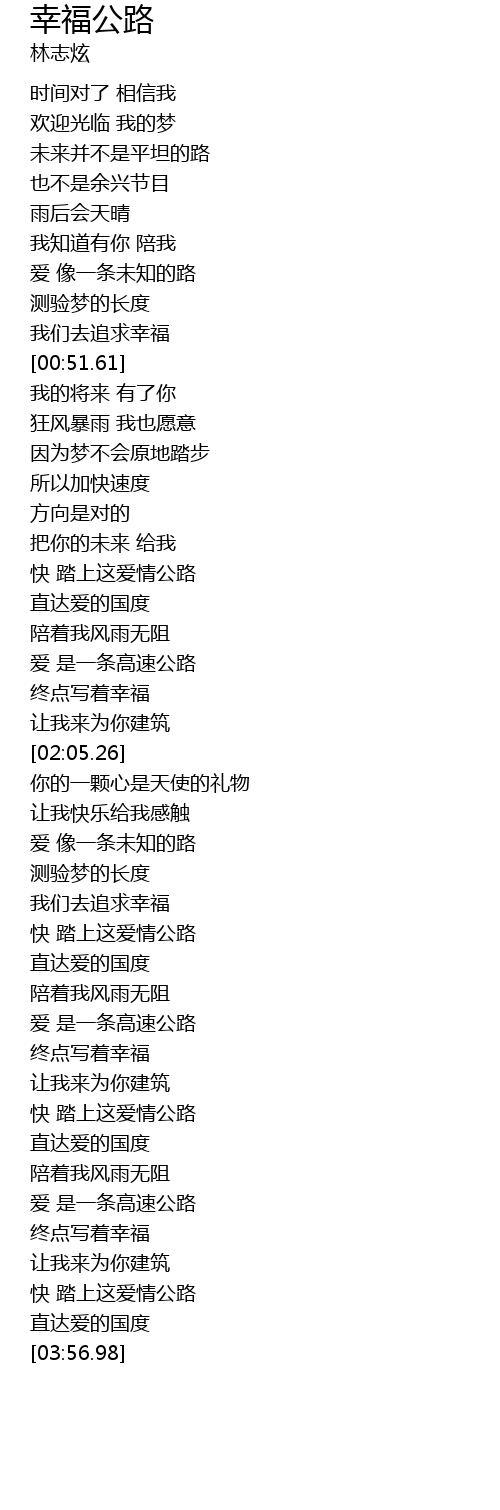 | [03:11.54] | 快 踏上这爱情公路 |