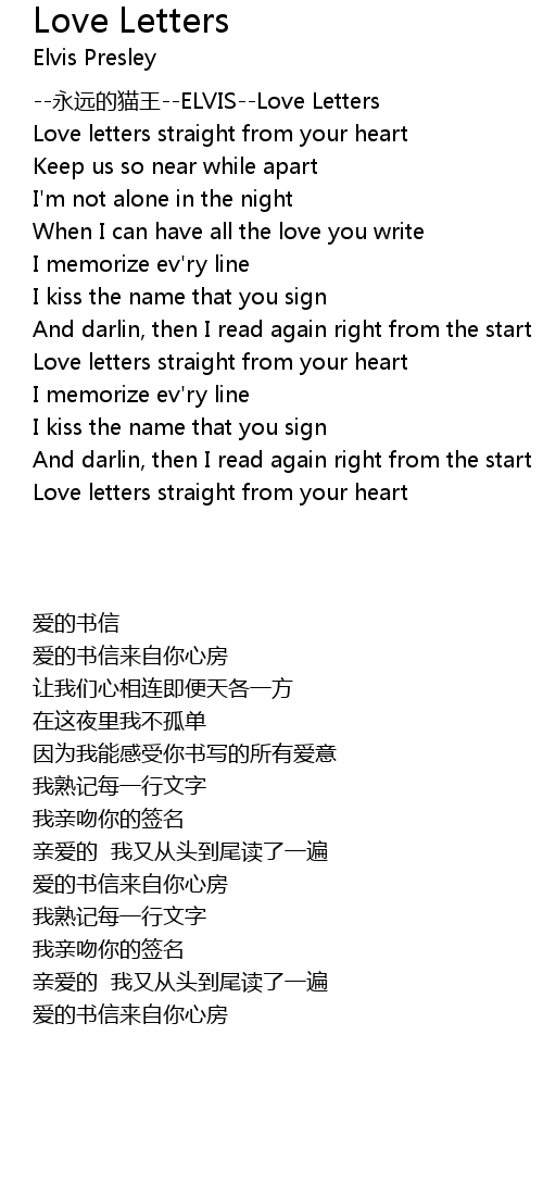 | [00:02.92] | --永远的猫王--ELVIS--Love Letters |