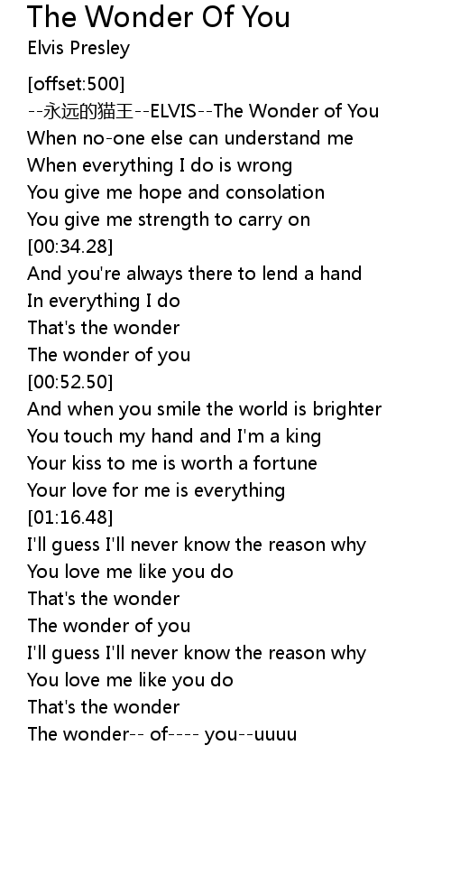 | [00:04.72] | yǒng yuǎn de māo wáng ELVISThe Wonder of You |