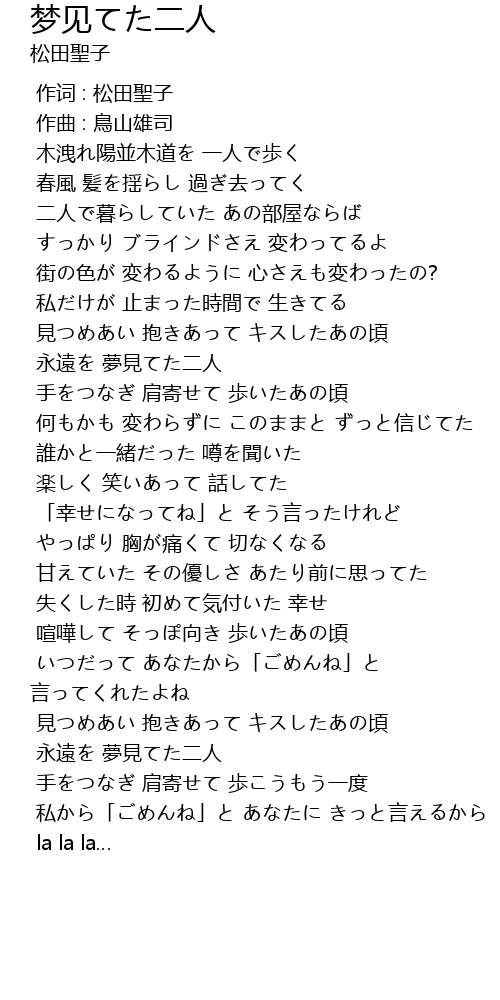 | [00:00.000] | 作词 : 松田聖子 |