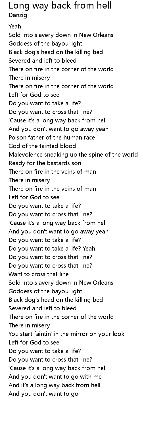 And it's a long way back from hell |