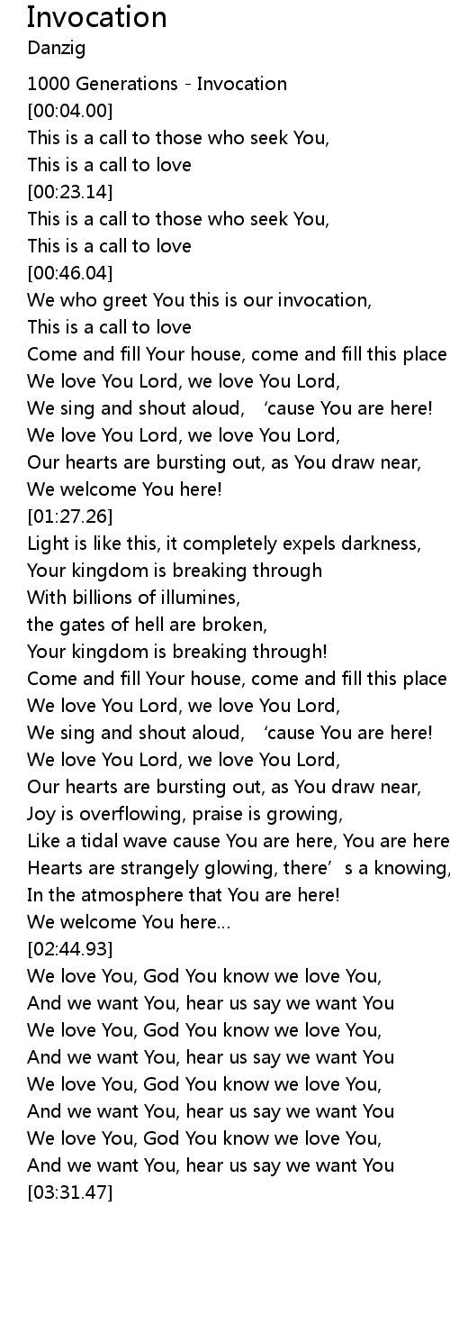 | [00:56.99] | Come and fill Your house, come and fill this place |