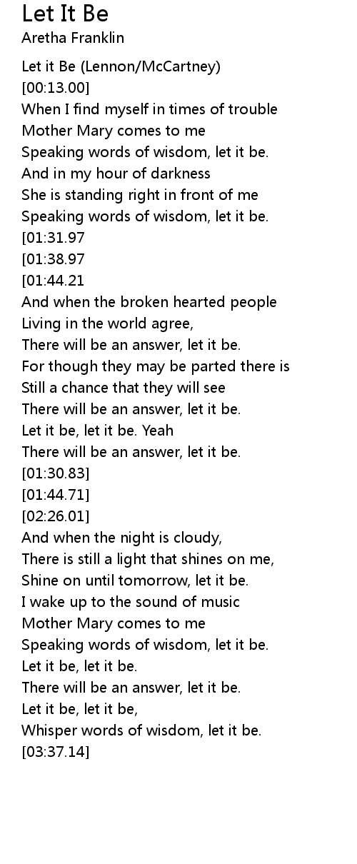 Whisper words of wisdom, let it be. |