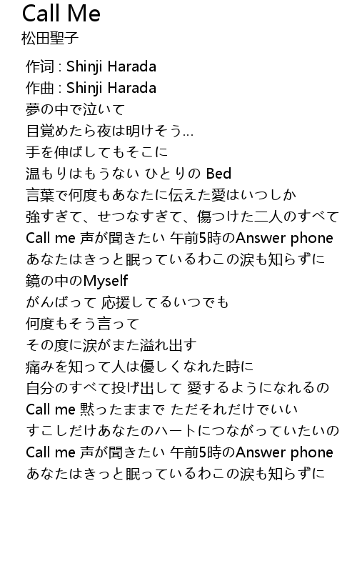 | [03:12.922] | Call me 声が聞きたい 午前5時のAnswer phone |