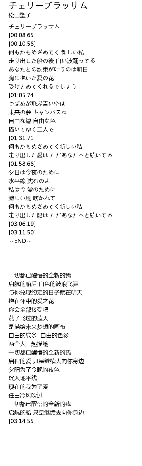 | [00:13.64] | 何もかもめざめてく 新しい私 |