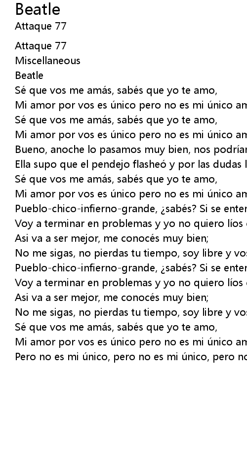 | Mi amor por vos es ú nico pero no es mi ú nico amor, pero no es mi ú nico amor. | |
