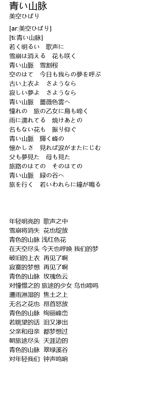 | [02:31.62] | 青い山脈 緑の谷へ |