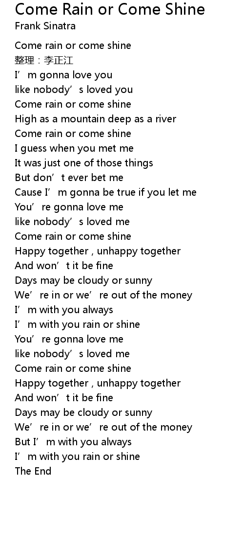 | [00:02.00] | Come rain or come shine |