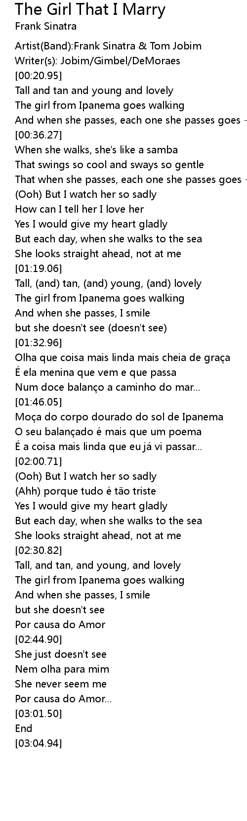 | [01:48.52] | Moça do corpo dourado do sol de Ipanema |