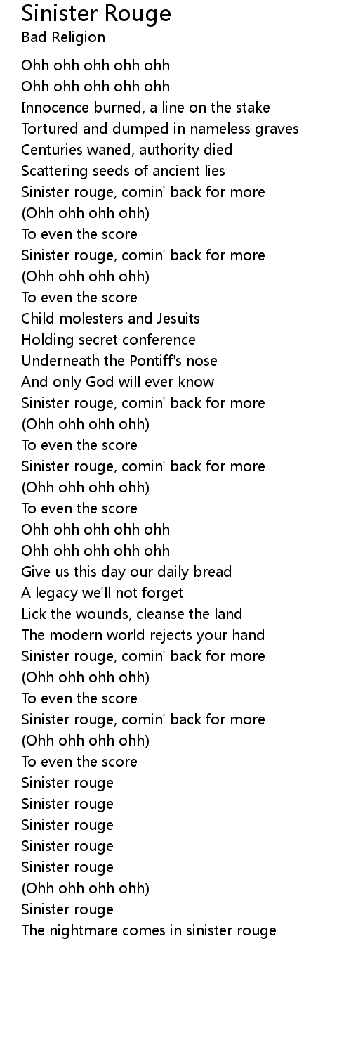 Sinister rouge, comin' back for more |