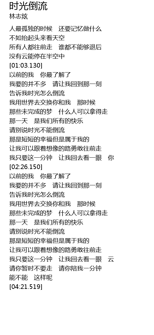 | [01:53.820] | qǐng bié shuō shí guāng bù néng dào liú |