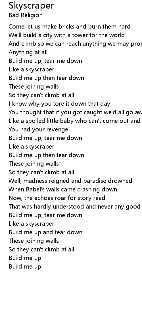 Build me up and tear down |
