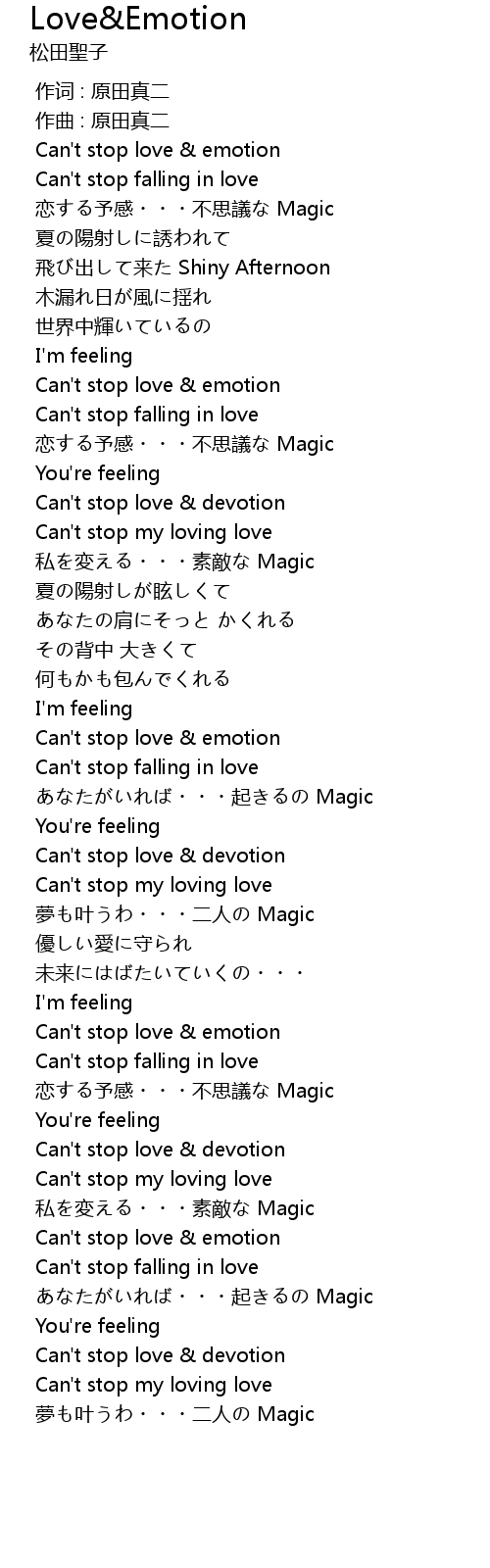 | [03:53.959] | Can' t stop love emotion |