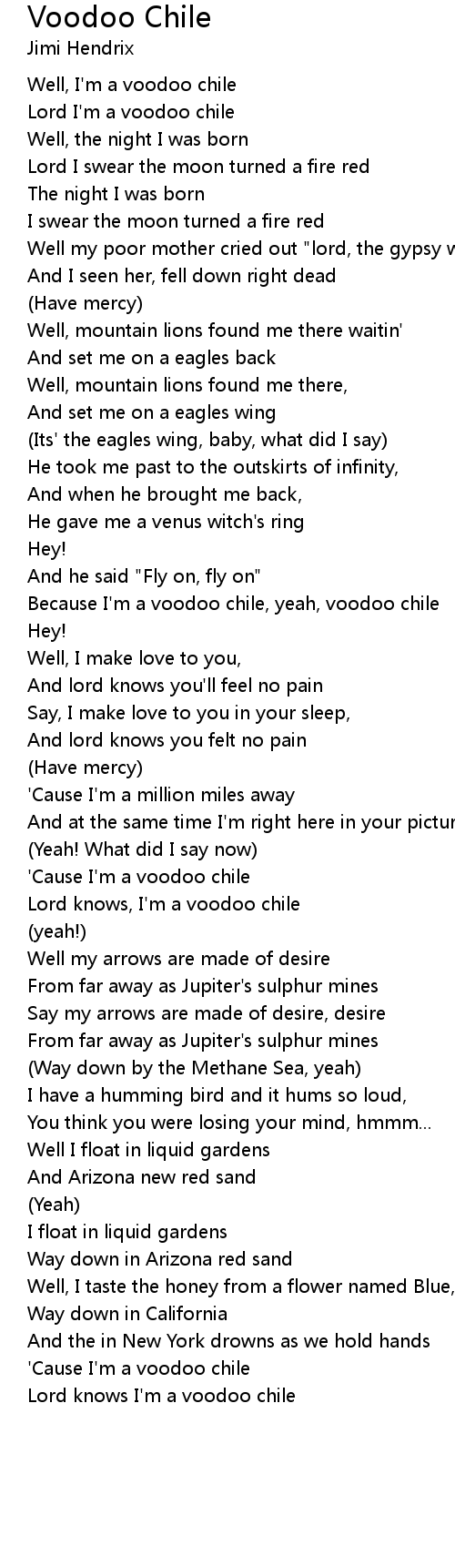 Because I'm a voodoo chile, yeah, voodoo chile |