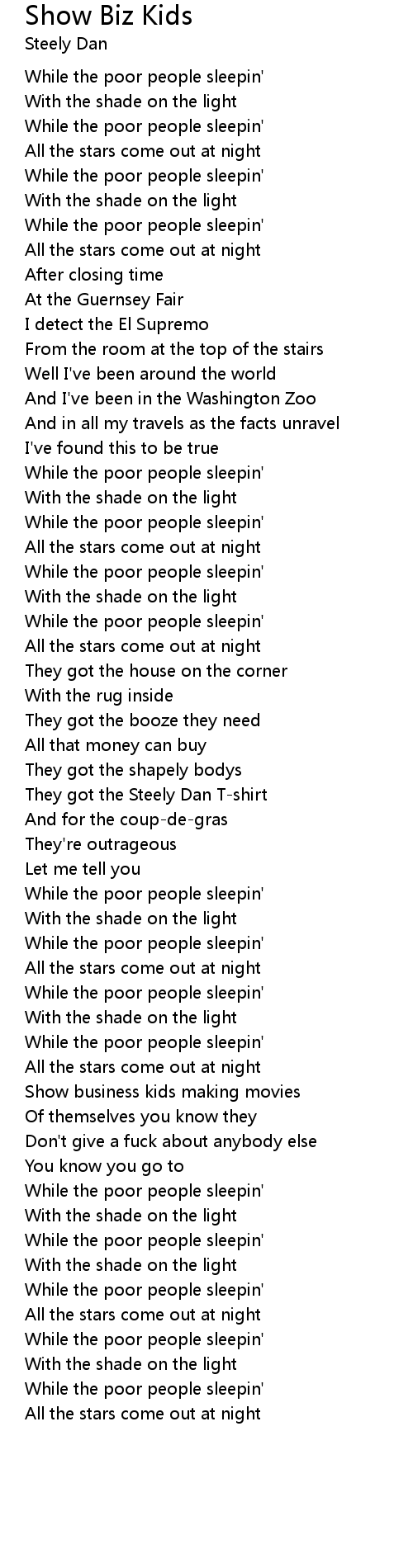 While the poor people sleepin' |