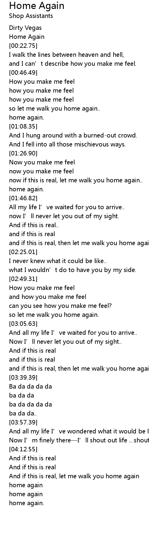 | [03:00.82] | so let me walk you home again. |