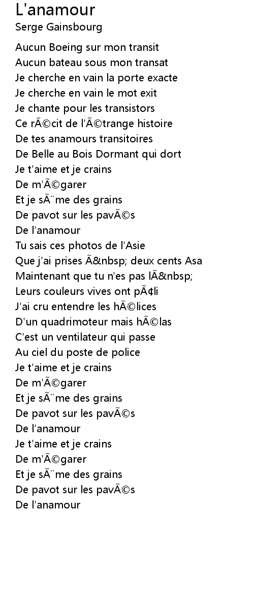 | De tes anamours transitoires | |