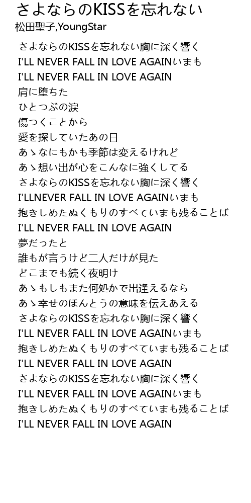 | [00:37.111] | I'LL NEVER FALL IN LOVE AGAIN |