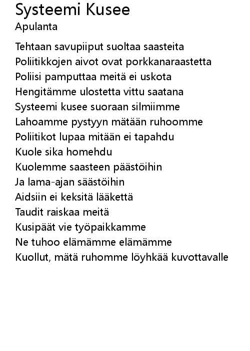 | Song | Systeemi Kusee |