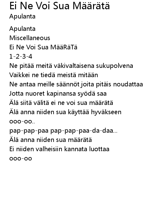 | Song | Ei Ne Voi Sua Määrätä |