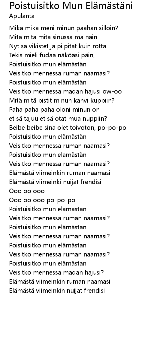 | Poistuisitko mun el m st ni | |
