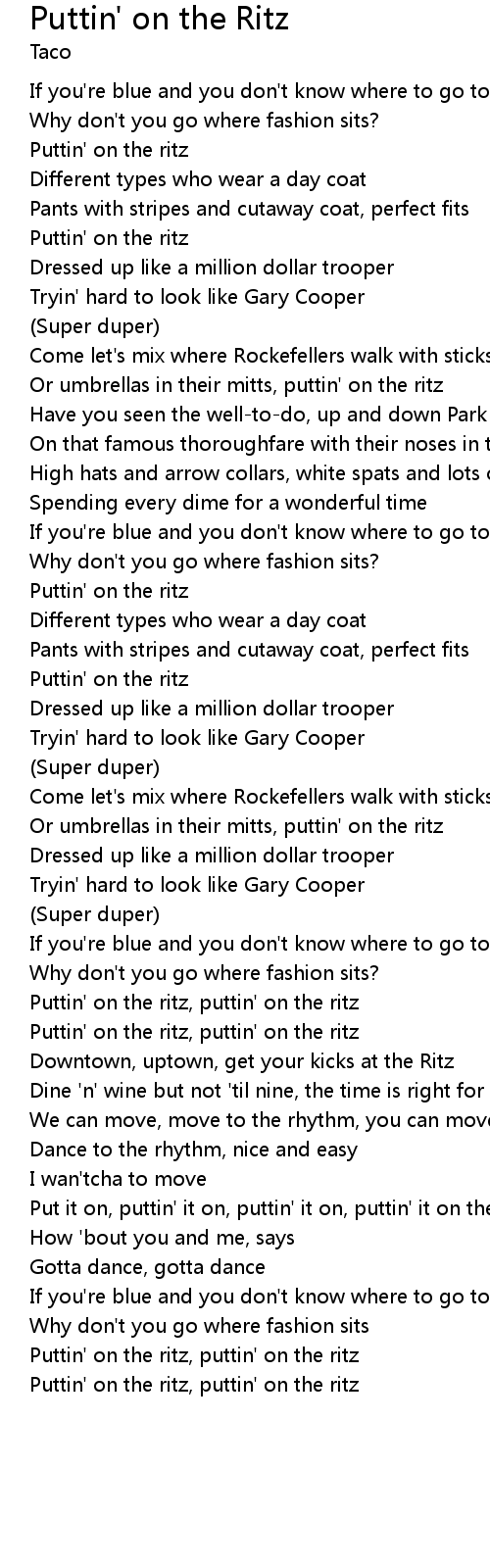 Put it on, puttin' it on, puttin' it on, puttin' it on the R I T Z