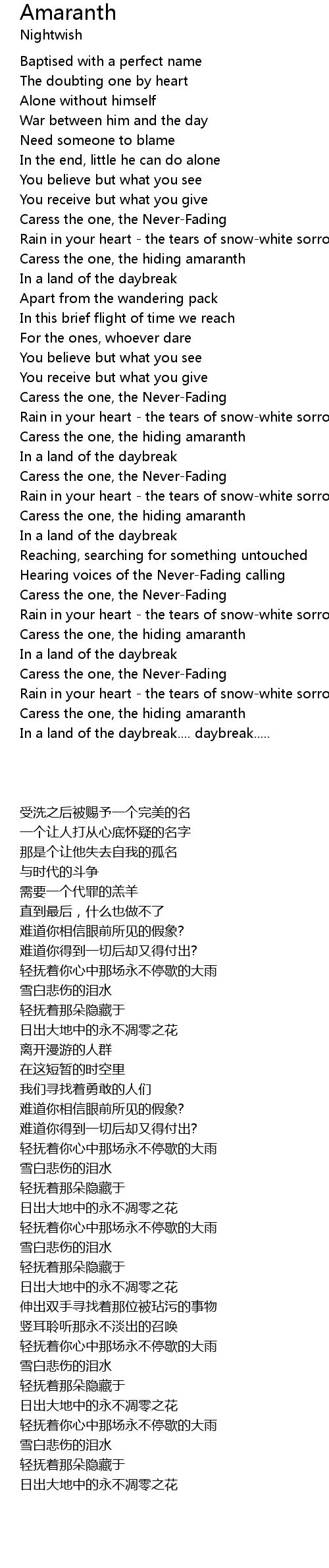 Caress the one, the Never-Fading |
