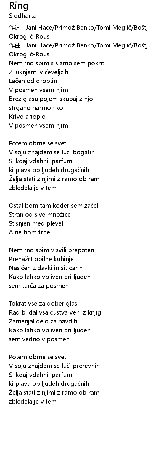 | 作词 : Jani Hace/Primož Benko/Tomi Meglič/Boštjan Meglič/Tomaž Okroglič-Rous | |