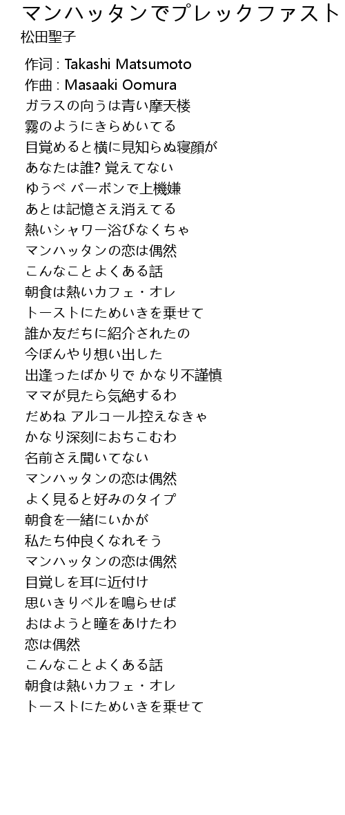 | [03:08.464] | マンハッタンの恋は偶然 |