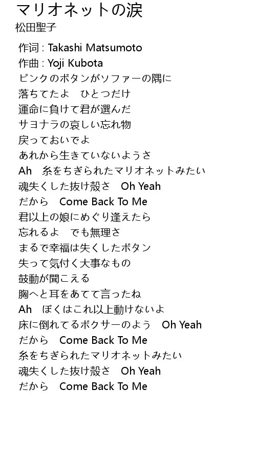 | [02:14.937] | だから Come Back To Me |